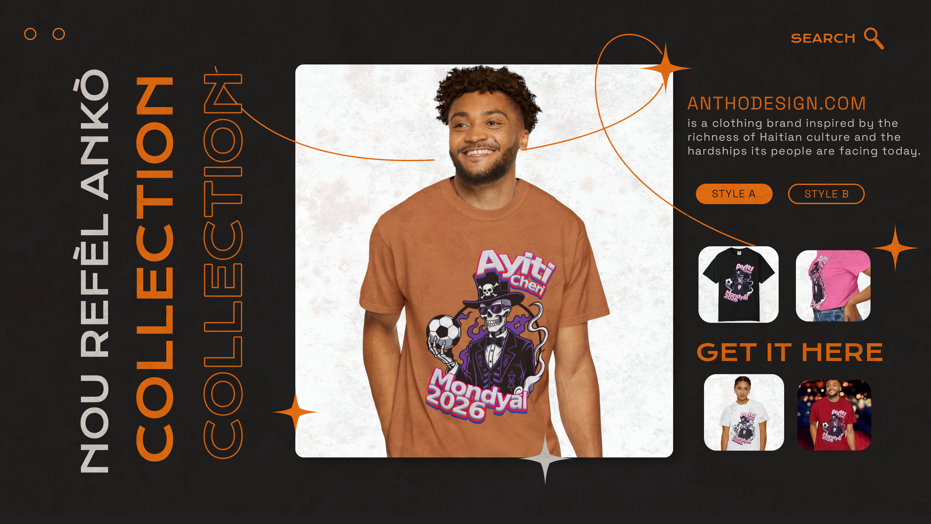 "NOU REFÈL ANKÒ" is a clothing brand inspired by the richness of Haitian culture and the hardships its people are facing today. Through every piece, the brand seeks to transform pain and struggle into a visual language made of strength, dignity, and hope.